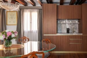 The project blends the charm of Venetian heritage with refined contemporary design, catering to an international clientele looking for an independent stay without compromising on high-level hospitality standards. Each apartment is conceived as a fully independent residence, featuring separate living areas, bright bedrooms, fully equipped kitchens, naturally lit bathrooms, and meticulous artisanal detailing throughout.