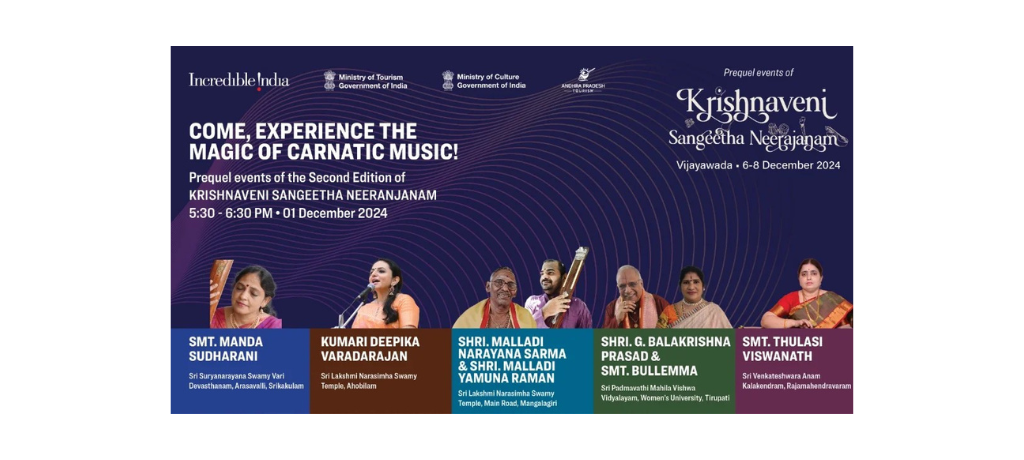 The Ministry of Tourism warmly invites everyone to join in Vijayawada from 6th to 8th December, 2024, to celebrate the timeless connection between music, devotion, and India’s rich cultural heritage.