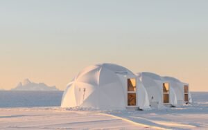 Echo Camp, White Desert’s most avant-garde offering, is set on a shimmering glacier, framed by towering nunataks. Floor-to-ceiling pods provide immersive views of the Antarctic landscape and starry skies, creating a sense of stepping beyond Earth itself.